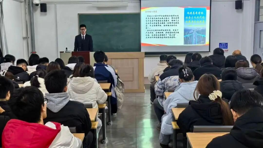 活动伊始,宣讲人围绕党的二十届四中全会精神作系统宣讲,结合权威文件解读、改革实践案例、数据图表等多元形式,紧扣青年成长实际,助力同学们精准把握理论核心与实践要求。宣讲聚焦两大核心板块,层层递进解析全会精神的时代价值:一方面,在全面深化改革战略部署板块,宣讲人依托“改革攻坚典型案例库”,列举科技体制改革中“卡脖子技术突破”、民生领域“异地就医直接结算”等鲜活实例。宣讲中,宣讲人既深耕理论要义,更着力搭建“理论—实践—青年责任”的衔接桥梁,通过“专业对接国家需求”互动环节,引导同学们结合专业探讨改革方向。活动尾声,同学们纷纷表示,将把全会精神内化于心、外化于行,以改革创新思维破解实践难题,为推进中国式现代化贡献青春力量。