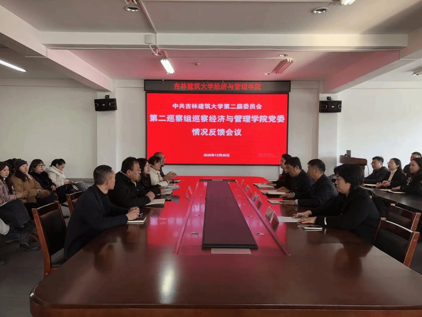 学校党委第二巡察组全体成员,经济与管理学院领导班子成员,科级干部,教研室、实验室主任,专业负责人和师生代表参加了会议。